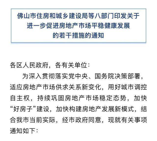 佛山市住房和城乡建设局等八部门印发关于进一步促进房地产市场平稳健康发展的若干措施的通知